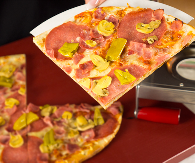Für Veranstaltungen empfehlen wir Pizza Spezial aus eigener Herstellung: Sie ist reichlich belegt mit fruchtiger Tomaten- sauce, lange gereiftem Käse, traditionell hergestellter Salami, Schinken von Meister- hand, ausgesuchten Champignons und von uns selbst eingelegten Peperoni. Wir liefern die Frischpizza mit etwa 32cm Durchmesser. Die Haltbarkeit bei normaler Kühlung beträgt 7 Tage, tiefgefroren ist Sie 6 Monate haltbar.